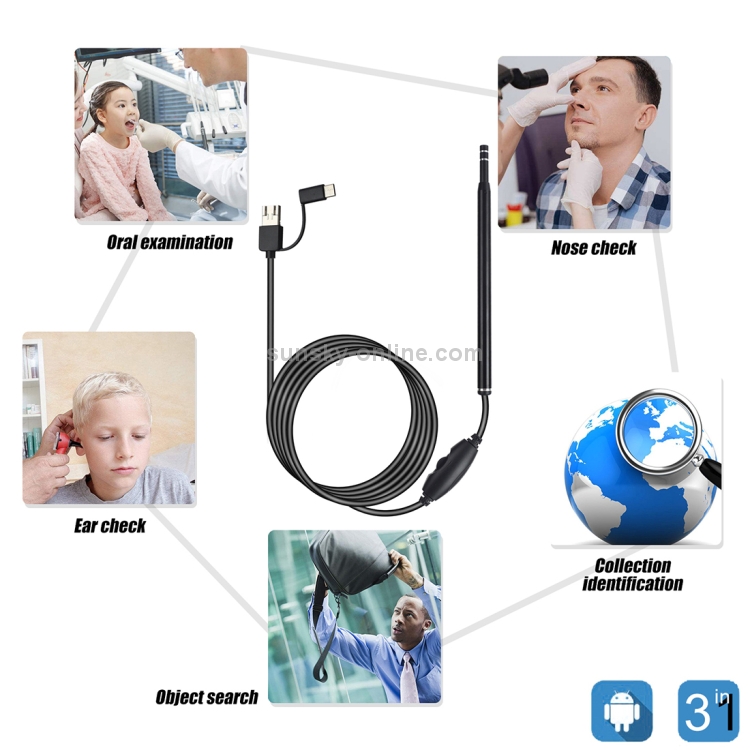 英文名称:AN101 5.5mm Home Otoscope Three-in-One Ear Endoscope 30W HD Otoscope Visual Ear Picking Otoscope(Black)