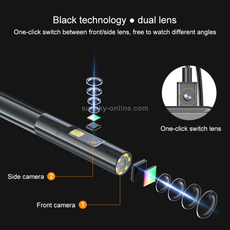2. Front/side lens, one key switch, free to watch different angles.