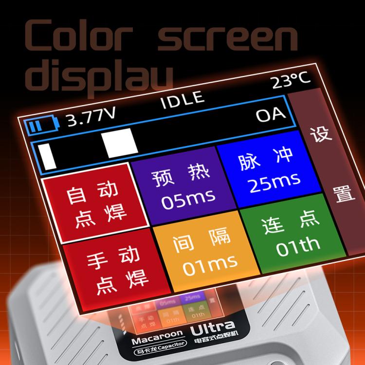 1. Macaron 多功能电容式点焊机,可焊接 0.1~0.4mm 厚度镍片,参数可调,电容储能,瞬间大功率,焊接更精准