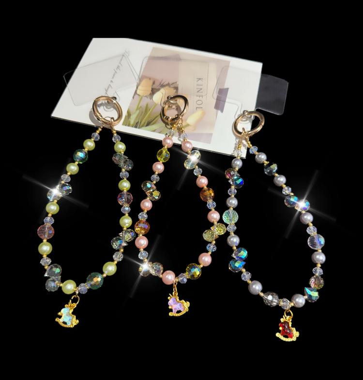 中文名称:独角兽珍珠水晶手机链(粉色)