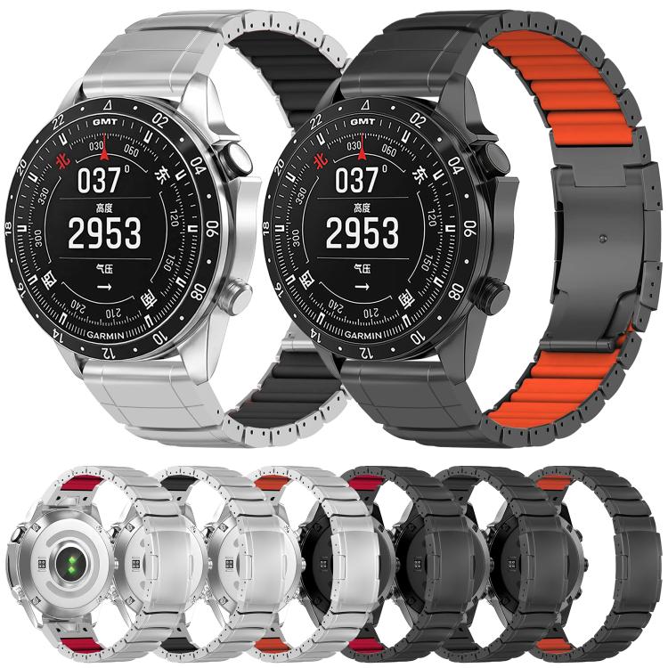 英文名称:For Garmin 26mm Turtle Buckle One Bead Silicone Titanium Alloy Watch Band(Black Orange)