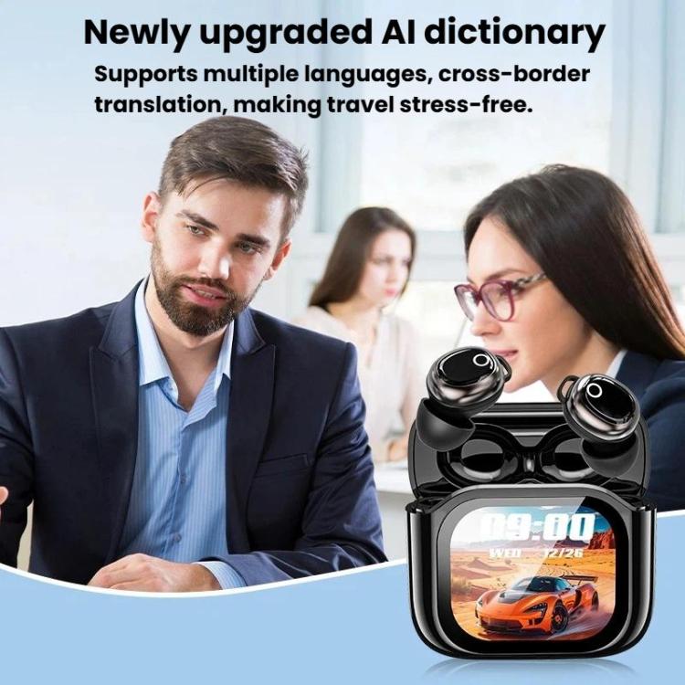中文名称:JM28 迷你蓝牙耳机带彩屏 翻译降噪入耳式耳机(黑色)